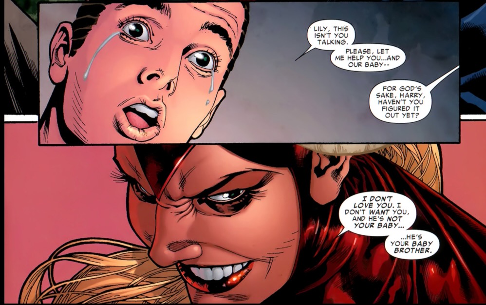 While that’s going on, something really disturbing happens. Lily Hollister tells Harry that all of this was just a trick to lure Spider-Man into Avengers Tower. She doesn’t love Harry. The baby isn’t his.