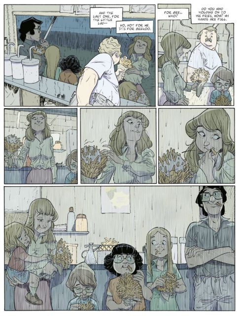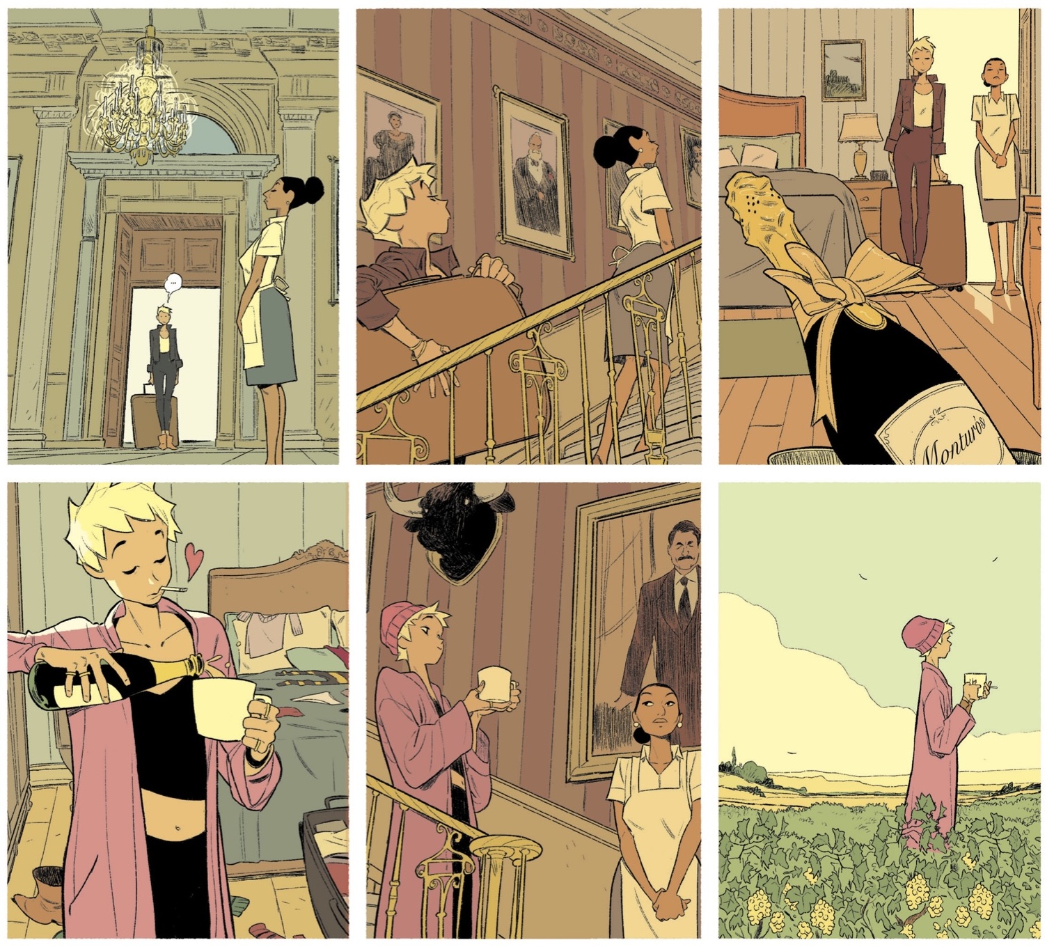 Dark Horse has just published I Am Their Silence, the English translation of his Je suis leur silence. While very different from its predecessor, it continues the tradition of being a beautiful book with a lot going on, offering much to delight in, both visually and within the narrative. Therapist Eva Rojas, herself bipolar, plays detective when a patient’s uncle is murdered at a family gathering. And not just any family, a powerful wine-making empire. The story is told through the lens of a psych evaluation to see if Eva is fit to keep her license. Her unconventional methods, often erratic behavior, and the fact that she has the ghosts of three deceased relatives living in her head, constantly offering advice, has called her professionalism into question, not to mention made her a suspect in the case. As explained in our conversation below and in his note at the end of the book, Lafebre handles the question of mental health with the respect that it deserves while also removing any stigma around the issue. After all, most people are affected by it in some way.