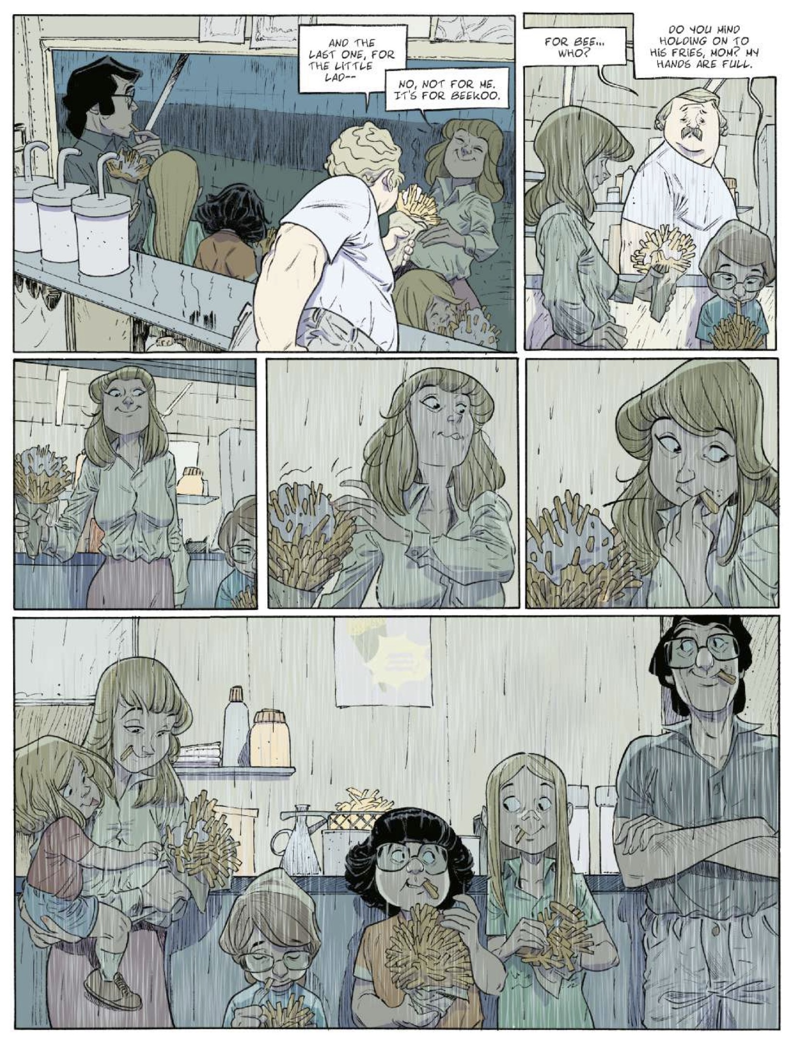 Thank you. I take that as a compliment. My books are also a kind of a love letter to comics themselves. I love the comic language and the fact that comics happen in the reader’s head. You have the panels, but the story, all the movement, everything that's happening is happening in the reader's mind. I love that. I grew up reading comics, and at one point, I felt that they were going to disappear because of cinema and other media. But I feel comics are like poetry. They’re so beautiful. The medium is so beautiful, it's never going to disappear. I'm romantic about that. I know they don’t have sound, they don't move, they don't go super fast like kids today need. But when a reader discovers comics, it feels amazing. There’s this story in their mind and it sticks forever. They’re no longer big, big mass media, but we still love comics. And we always will. But at the same time it's true that I see the stories I put in my comics as films. I see the characters move and listen to their voices in my head. And when I write the script, I close my eyes and really picture what’s happening — the backgrounds, the environment, everything. Then I try to make that story as accessible as possible to the readers.