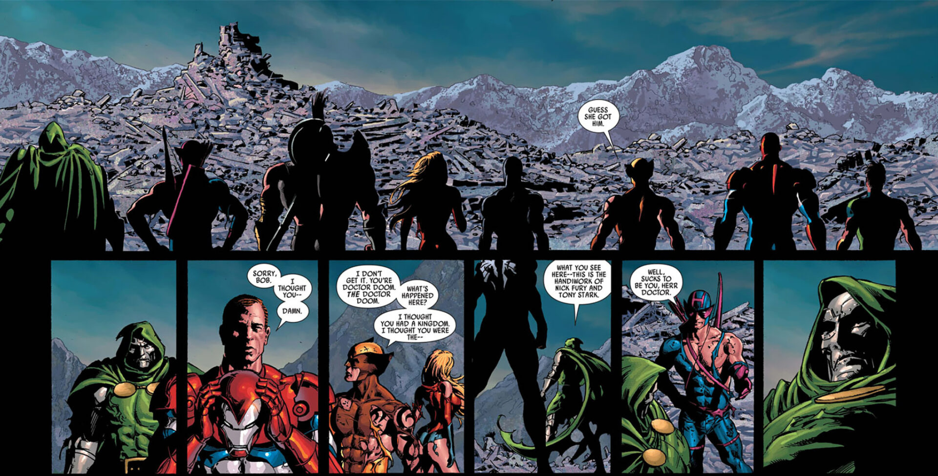 At the end of the first issue of this series, Morgan LeFay attacked Doctor Doom. What does this have to do with Norman Osborn’s newly formed Thunderb—uh, Avengers? Read on.