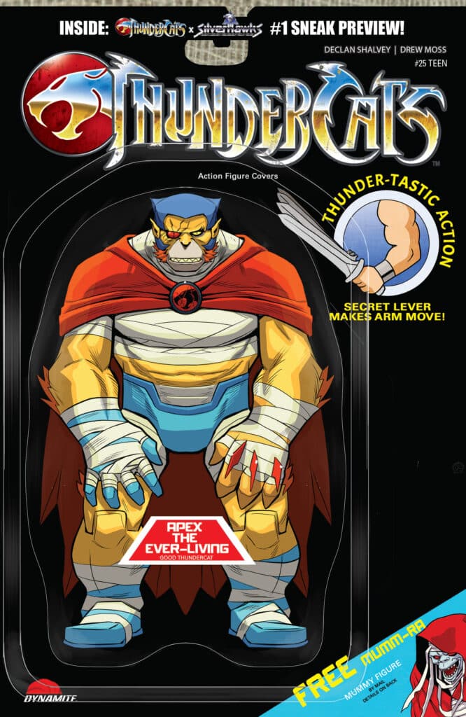 For collectors, Dynamite Entertainment is celebrating this silver anniversary with a “Premium Mystery of Thundera Blind Bag.” This unique program includes: