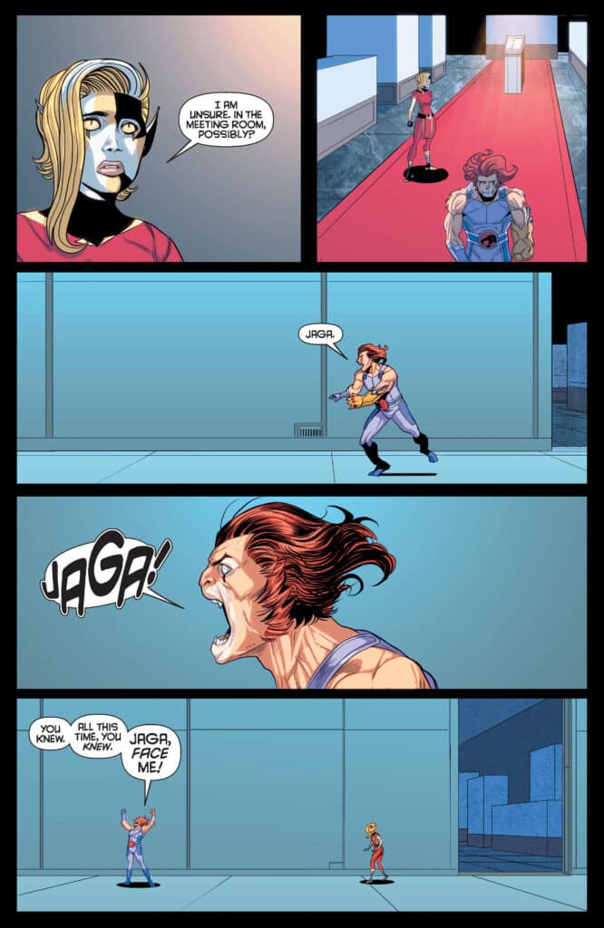 The pacing of the issue allows for a deep dive into the psychological toll of being a “child-king” in an adult’s body. Cheetara’s scathing observation that “You are not leading, Lion-O. You are shoving,” provides a rhythmic tension that carries the reader through the 32-page journey. As the team realizes that the sweet boy they once knew is becoming a “bully,” the reader is treated to a study on power and the fear of inadequacy. Transitioning from the quiet corridors of the Cats’ lair to the explosive confrontation with their own history ensures the energy remains at a critical mass.