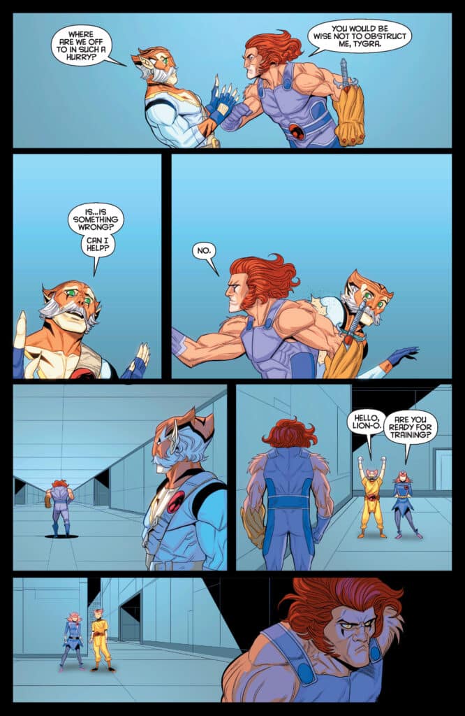 What readers should prepare for in ThunderCats #25 is a narrative that finds its heart in internal conflict. The interior preview pages reveal a pensive Lion-O shouting for Jaga, his frustration reaching a breaking point as he seeks answers from the Book of Omens. The tension escalates when Tygra attempts to intervene, only for Lion-O to react with an uncharacteristic, erratic aggression. Shouts of “Do not tell me to calm down!” and physical shoving indicate a hierarchy of leadership that is currently “teetering on the edge of destruction.”