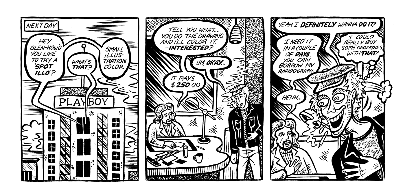 Top image: Nineteen-year-old Glenn gets an assignment for Playboy from Skip Williamson, from Chicago. Above. The illustration that ran in Playboy. Images courtesy Glenn Head.Well, it can be good to have some version of a gun against your head. You can be very productive if someone's got a threat over you.