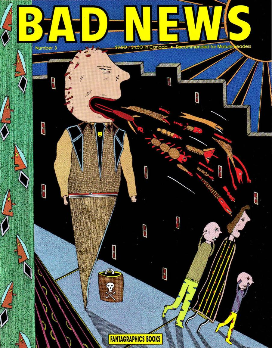 Mark Beyer's cover for Bad News #3, 1988.Yeah, Bad News started at SVA and was kind of ... not a sibling, but maybe an offshoot or a variation or whatever of RAW.