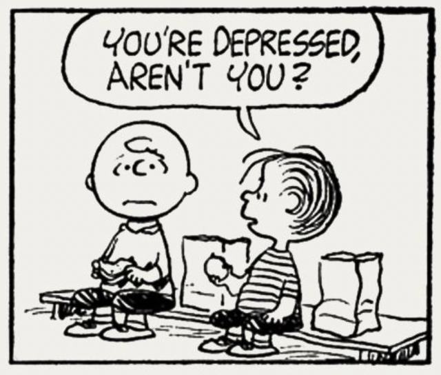 A Charles Schulz Peanuts panel.But the point about Peanuts was that it was something with a great deal of childhood interiority, you know, in a way that I haven't seen better since, in terms of how it captured how painful kids’ lives are. The whole thing of what was going on, and Charlie Brown's life, and the failure and the sorrow — it was the first comic I read, and I read it pretty fanatically, and I think that had a huge impact on me. I think it probably really drew me to autobiography before I even realized it because it has anguish baked right in.