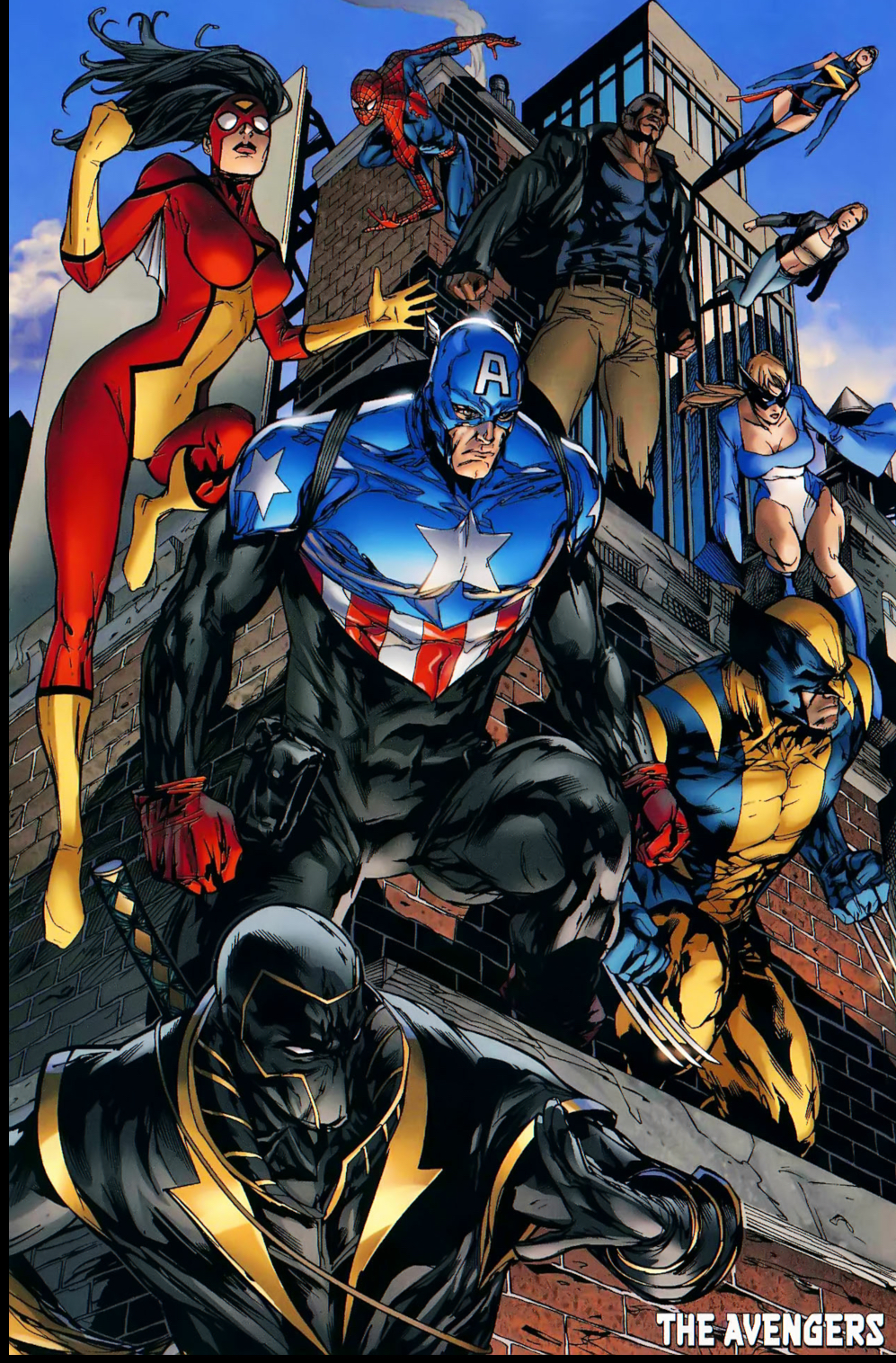 This story bridges the Secret Invasion/Dark Reign eras, so it’s helpful to have a group shot that reminds us who the team are now. It’s also their first assemblage since all the skrull-replacers were killed–so the big shot is helpful. Can’t explain why Bucky Cap’s costume looks like that, but, whatever.