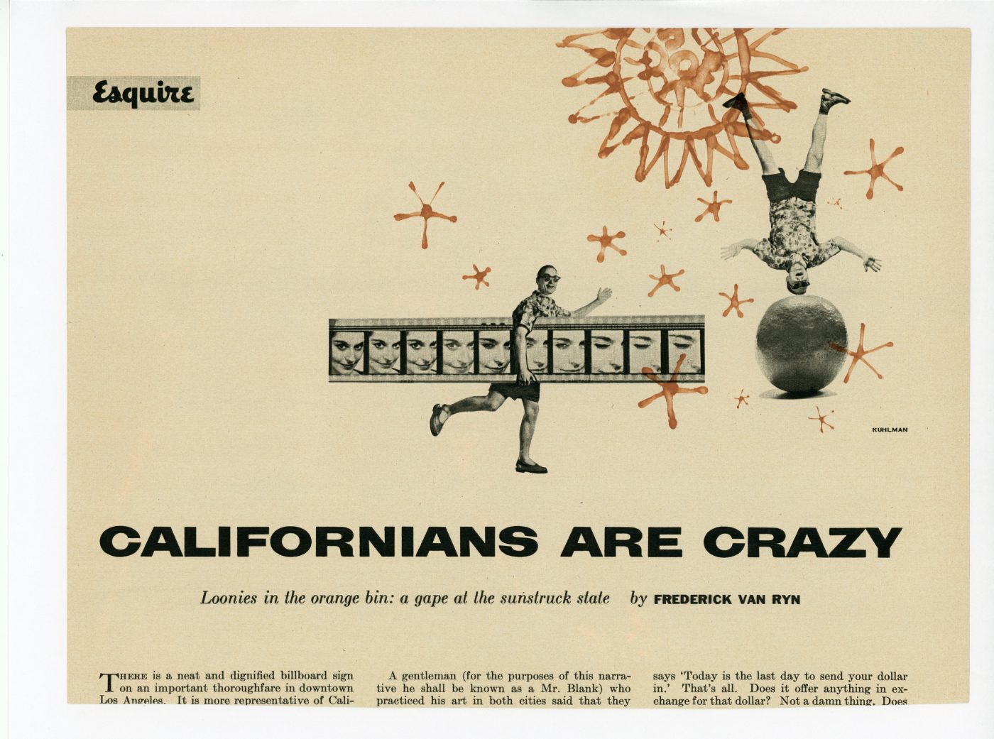 Kuhlman used himself as a model for these Esquire article headers. Design, illustration and photography by Roy Kuhlman, circa 1953.