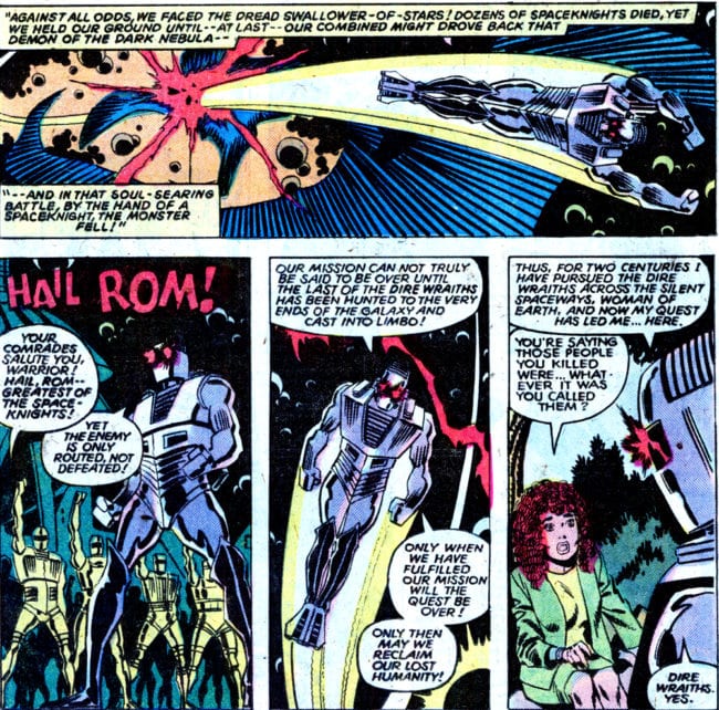 Rom: Spaceknight #1 (December 1979) was written by Bill Mantlo, lettered by Tom Orzechowski and colored by Bob Sharen, with art by Sal Buscema.By 1970, Sal had landed the plum job of penciling Marvel’s Avengers title. He quickly proved to be a skilled, versatile artist and began tackling a wide range of assignments, including penciling the first 50+ issues of Rom, Space Knight, doing a run on The New Mutants, and drawing Thor from Walt Simonson’s scripts. Buscema’s tenure on Captain America working from Steve Englehart’s scripts lasted three years from 1972 to 1975, and catapulted the title to one of the best-selling Marvel books. He reunited with his brother for a five-issue run on Fantastic Four, inked Ron Frenz’s pencils on Spider-Girl for a while, and even took on some special projects at Marvel’s competitor, DC Comics.