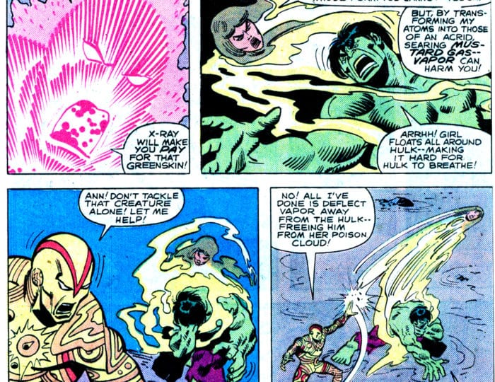 The Incredible Hulk #254 (December 1980) was written by Bill Mantlo and lettered by Diana Albers colored by Bob Sharen, with art by Sal Buscema.After concluding his epic run on The Incredible Hulk, Buscema did his equally memorable 104-issue run on The Spectacular Spider-Man. During this period, Buscema inked the issue that featured the death of long-time supporting character Harry Osborn. Among his lesser assignments were several of the long-running ads for Hostess products that featured Marvel superheroes such as Captain Marvel, Thor, Captain America and, of course, Spider-Man.