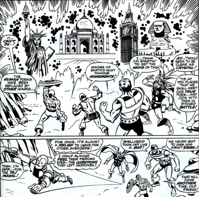 Sub-Mariner #32 (December 1970) was written by Roy Thomas, inked by Jim Mooney and lettered by Sam Rosen, with art by Sal Buscema.During Marv Wolfman’s brief reign as Marvel’s Editor in Chief in the mid-’70s, when Marvel had a “revolving door policy” with its editors, Marvel was printing so many titles that creative teams were strained to the maximum, and many books were being shipped late. In order to provide a cushion for late work, Wolfman created a fake comic book titled Marvel Fill-In Comics. It is a testament to Sal Buscema’s value to the company and of his reputation as a fast, reliable pro, that he and frequent collaborator Bill Mantlo were tasked with creating single-issue fill-in stories for all of the major Marvel characters whenever it looked like the regular creative teams was going to be late.