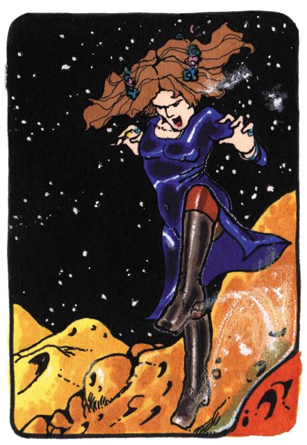By this time, Vaughn had spread his work beyond Syracuse. He had been art director for a public relations firm, where he had created animated commercials, displays for trade shows, and a comic book, Powermowerman. He had contributed to dozens of comic and science fiction fanzines. (In two of these, Shangri L’Affaires and Witzend, he would post one of his most powerful narratives, “Cobalt 60.” It tells the story of another isolate, a hideous, homicidal mutant, who roams an Earth stripped and sterilized by nuclear war into dust and bones and empty winds. His contribution will be the slaying of the last woman capable of conception.) He had done promotional material for fan conventions and drawn covers and illustrated stories for the sci-fi magazines If and Galaxy. (After he won a Hugo in 1969, as Best Fan-Artist, Galaxy launched his cartoon serial “Sunpot.” But when editors, who objected to its sexuality, rewrote an episode without his consent, Vaughn killed his characters and was fired.)