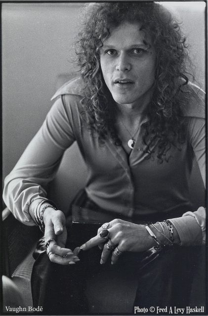 Photo of Vaughn Bode taken in 1975 by Fred A Levy Haskell.He had drawn his first cartoon when he was five, his first comic when he was seven. No one else who came to supper or through a front door he was likely to step did that. This individualization strengthened his sense of a life apart. To the extent the drawing satisfied, the correctness of this course felt confirmed. Drawing drew him from where he was otherwise condemned to be. Its pencil lines and colors transformed his self as well as any other blank page.