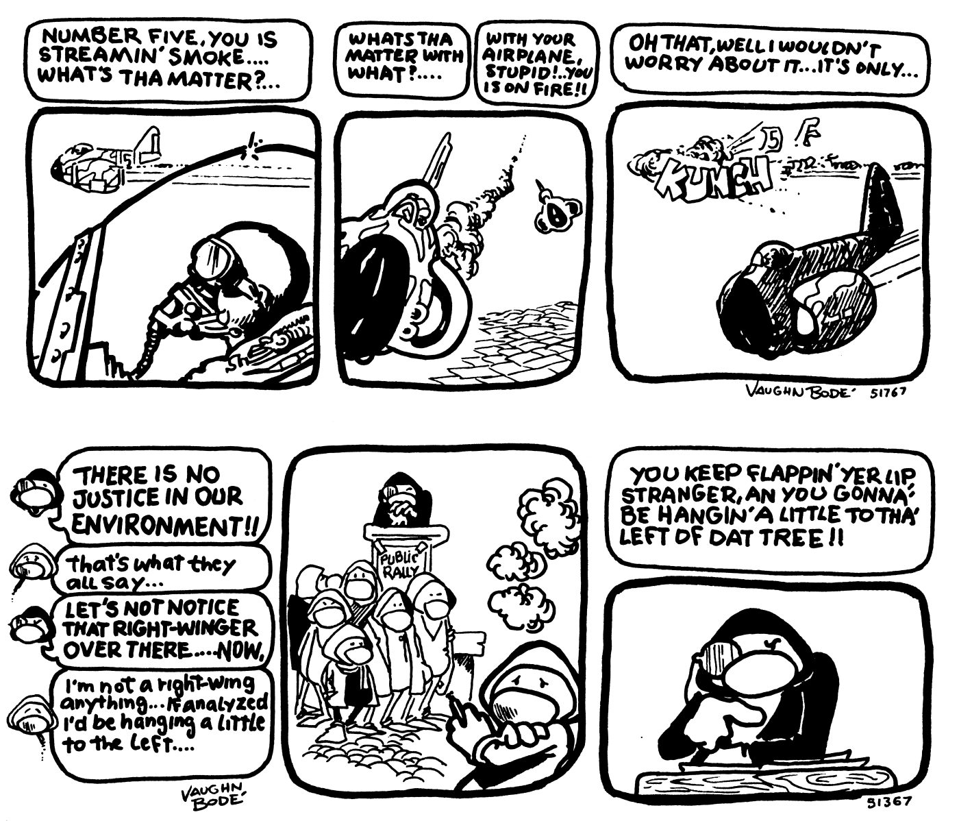 The upheavals of the late 1960s had cast into being newspapers that printed cartoons sexually and politically unlike any before. In early 1968, Larry Todd showed one of these papers, The East Village Other, to Vaughn. It had work by Robert Crumb.