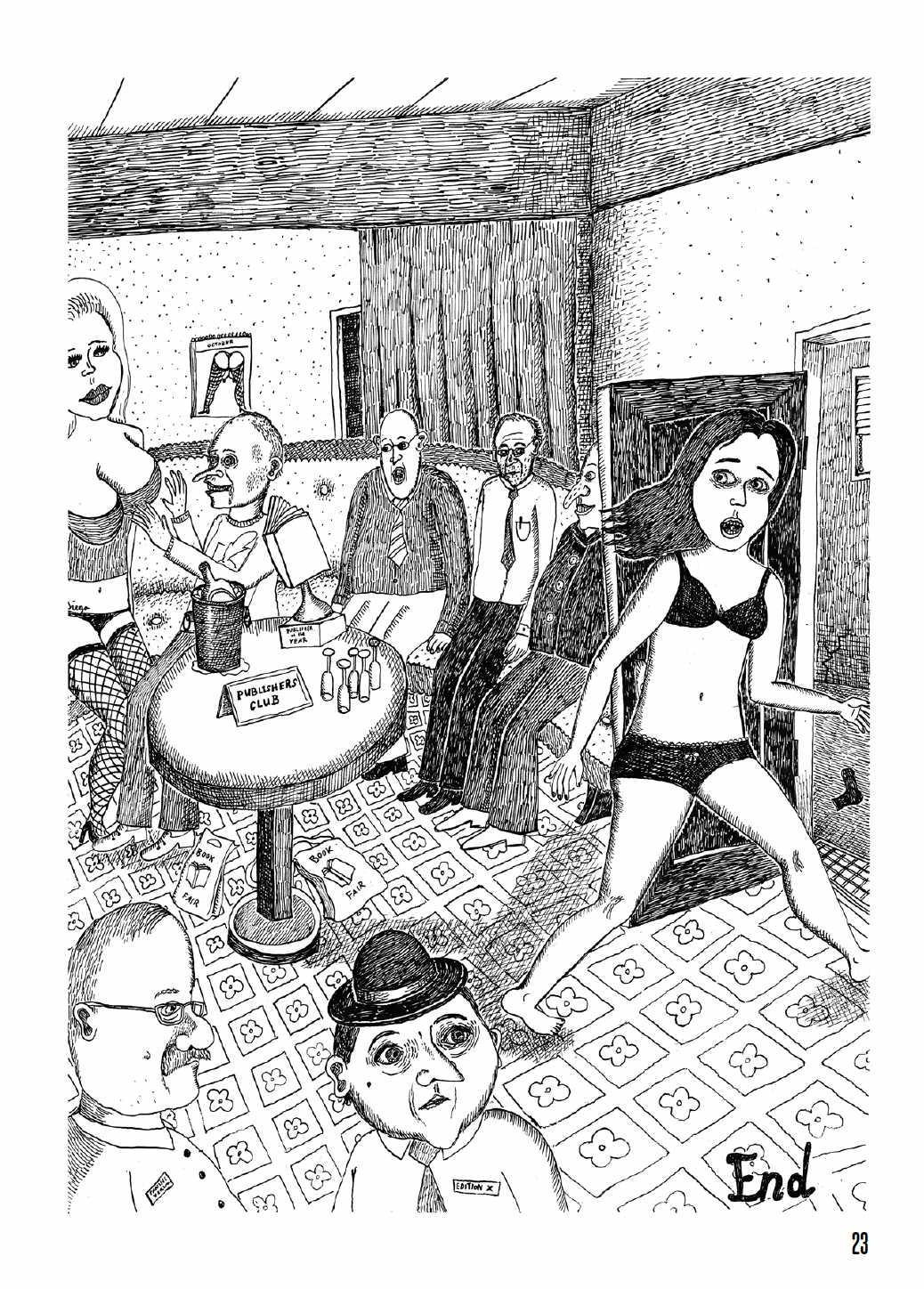In sixth place, I’ve put Ville Ranta, who seems incapable of making a bad book. For over twenty years, Ranta has chronicled his life in comics. His latest work revisits the period when he was active at a Finnish cultural magazine, where he, among other things, published a comic that satirically commented on the Finnish political leadership’s response to the Muhammad cartoons controversy in Denmark—a topic he discussed in an interview with The Comics Journal. In Les buveurs de vin, the reader follows both the events themselves and their aftermath, interspersed with prodigious amounts of drinking. That Ranta remains untranslated into English becomes more baffling with every new book.