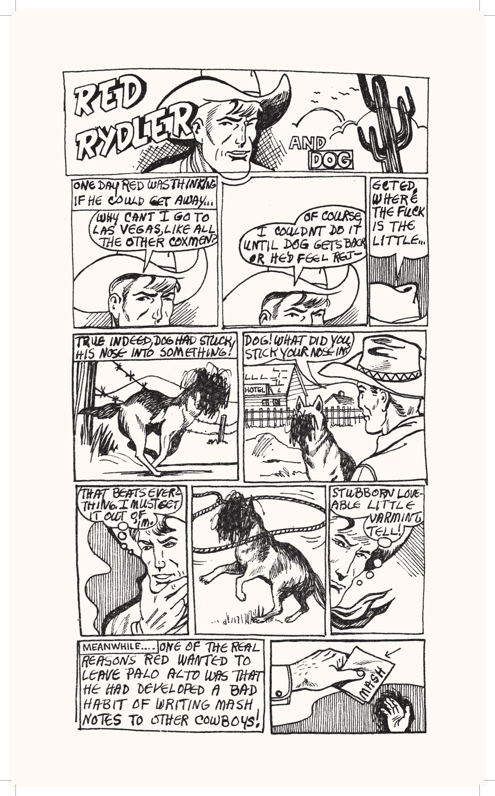 In the two-page strip “Red Rydler and Dog,” based on the primitive Western comic strip by Fred Harman, racism, gay longing and toxic masculinity do an uproarious dance. Brainard’s drawings capture the frank essence of generic graphic art while poet Frank O’Hara charges each speech balloon and caption with provocative thoughts and dialogue. It’s the essence of funny-sad with a chocolatey coating of absurdity, done with deadpan as if nothing’s awry. If this strip wins you over, you are C Comics material.