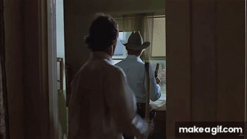 Those are the only words spoken by John Kirby as he silently walks outside and grabs an ax. With no emotion, Jack stalks the shrill mother whose screams alert the father. John easily kills him, before he chops down a door where the mother is trying to escape through a window. A passing mailman sees her struggles and calls the police, but they are too late to save the mother, as John kills her with a satisfied grin on his face.