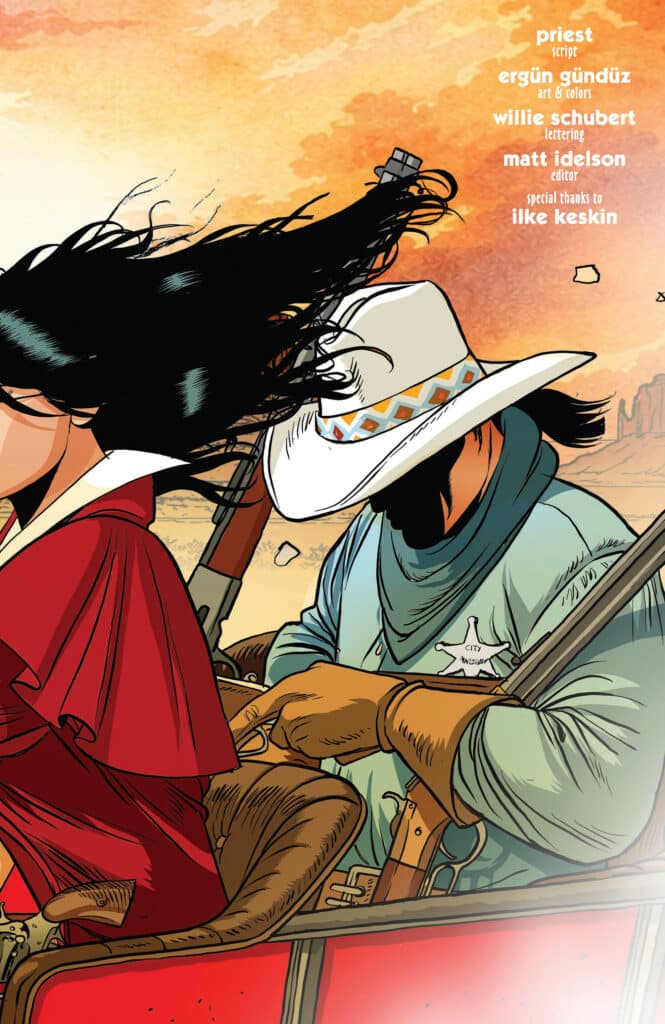 Visually, Vampirella #12 is a spectacular achievement. Gündüz’s ability to render the “unwrapped” and raw reality of the Old West through a horror lens is unmatched. The character acting captures every flinch of doubt and every spark of defiance, rendered with a clarity that emphasizes the high emotional stakes. Rendering a “western” version of Drakulon’s daughter requires a level of artistic authority that Gündüz delivers with visceral flair.