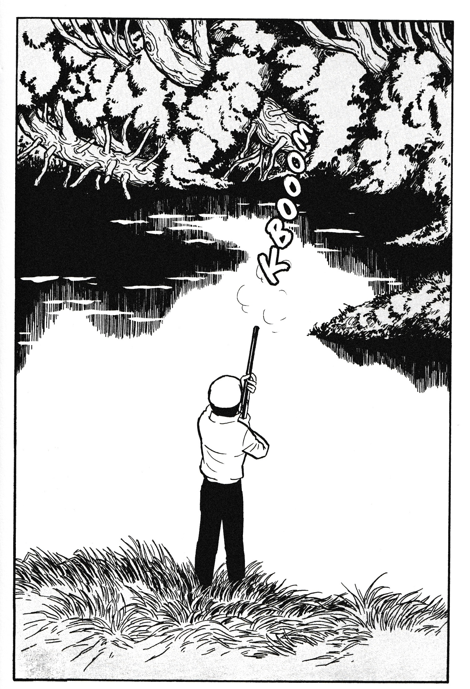Tsuge was entirely unaware of the existence of Garo. But his curiosity was piqued. In 1966, he published his first comic in Garo, the short story "Numa" ("The Swamp"). A surreal fairy tale about a hunter who encounters a mysterious woman in the woods, the story was inspired a trip he took with Sanpei Shirato to Suebiro Ryokan in Otaki, Chiba. Tsuge met a young woman working at an inn who spoke with a heavy accent. From that he dreamed up the story.