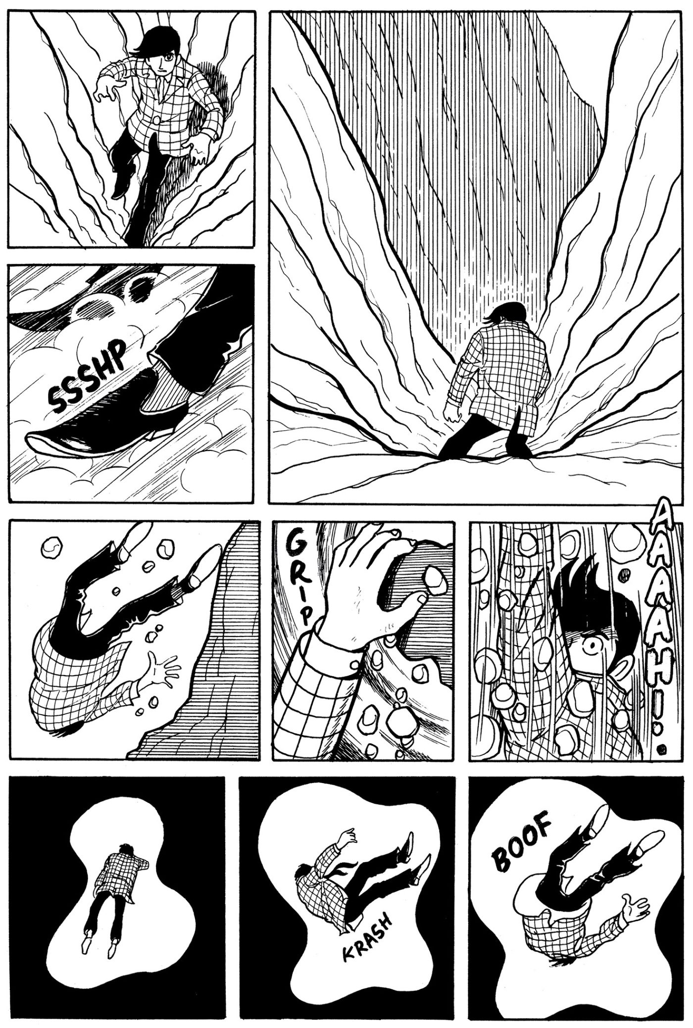 "An Incredible Story," one of Tsuge's first strips, 1954.Manga had exploded with the revolution that accompanied Osamu Tezuka’s New Treasure Island published in 1947. Tezuka took his drive and brilliance to Tokyo where he defined what comics would look like for Japan. Publishing in magazines like Manga Shonen and Shonen Magazine, Tezuka created some of his most influential works, such as Kimba the White Lion (1950) and Ambassador Atom (1951). It was in Manga Shonen that he developed the instructional column called Manga Classroom (1952–54). Here, he taught the fundamentals of being a cartoonist and encouraged readers to create their own comics. Tezuka wanted readers to not just enjoy reading manga, but to see it as a learnable craft they could master. This column would be art school for many future artists, including Yoshiharu Tsuge.