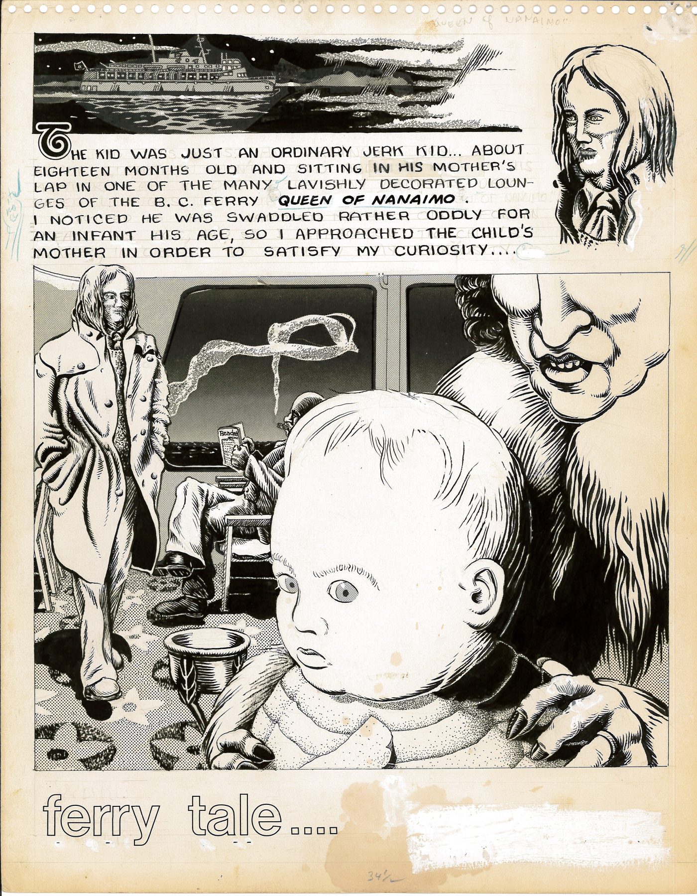 Ferry Tale page 1 - Written by Ted MannBeyond those two published works, Leo had a pretty strong stack of unpublished comics. He thankfully let me borrow the original art to scan, in hopes I could find a publisher interested. I wasn’t able to find anyone to take on the project and it all sat in the back of my mind for the following 10 years. Leo was kind enough to let me can all of his pages and post them on my old neglected Canadian Comics Archive. Last summer, my interest in Canadian undergrounds peaked again, and I successfully pitched an anthology collection to Conundrum Press. I have been spending the last year digging into the wide range of one of the more obscure corners of Canadian comic history. Supported by researchers Brian Campbell and Victor Marsillo, my eyes really opened up to just how much there is out there, and seemingly the deeper I dig, the more I find. I am looking forward to sharing more of my research in Canadian comics history.