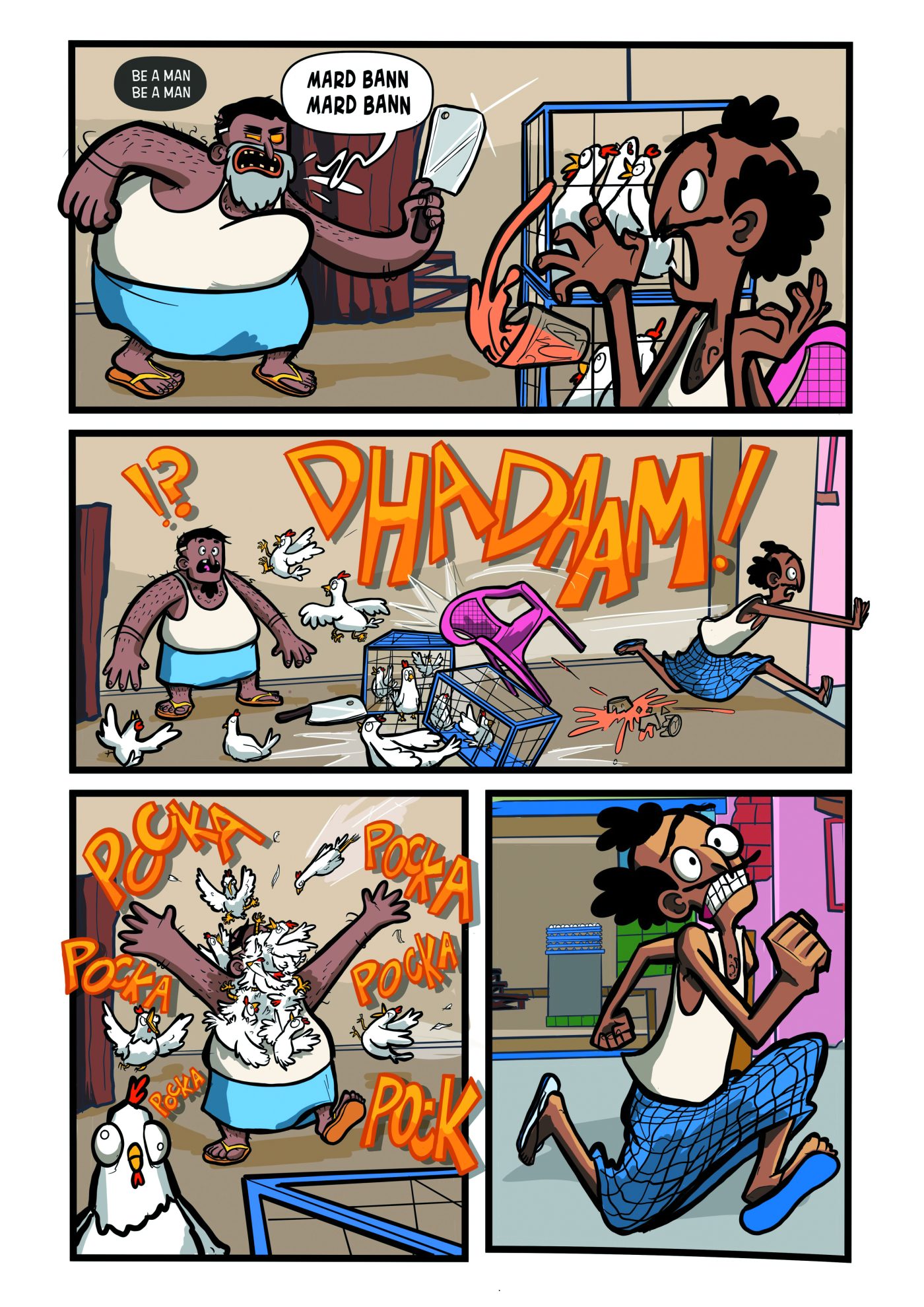 Page from Hallubol #1: Mard Bann. Story and art by Rahil Mohsin and Alankrita Amaya.What sparked the idea for Hallubol?