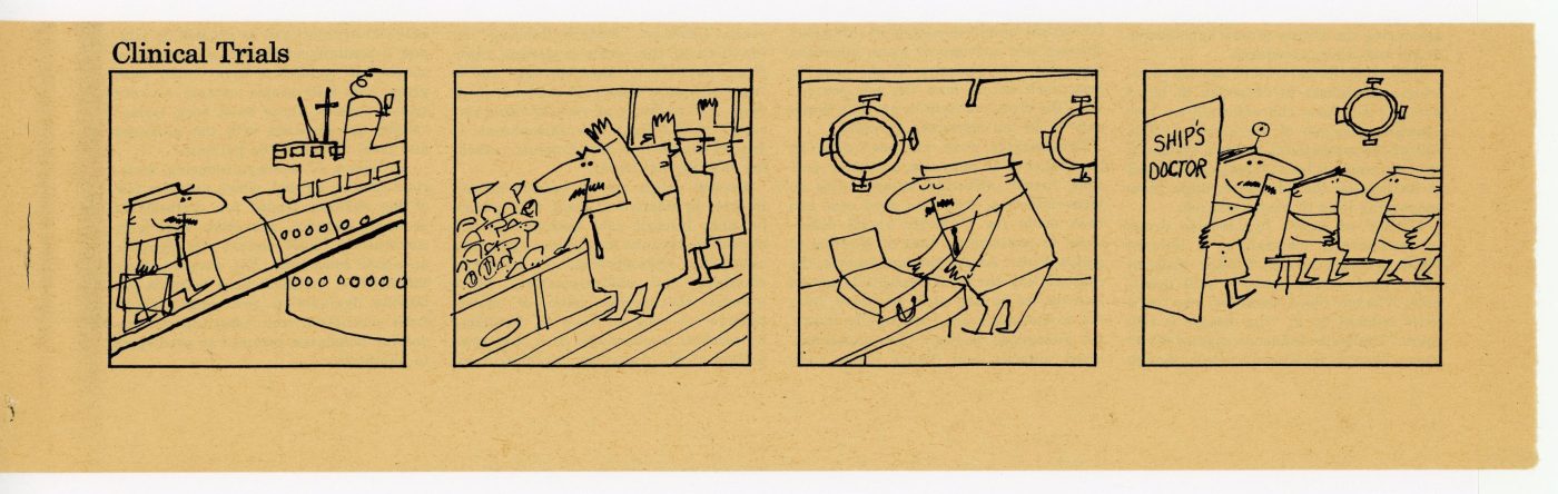 More episodes of "Clinical Trials," the comic strip Kuhlman created for the Journal of American Medical Association, c. 1954.