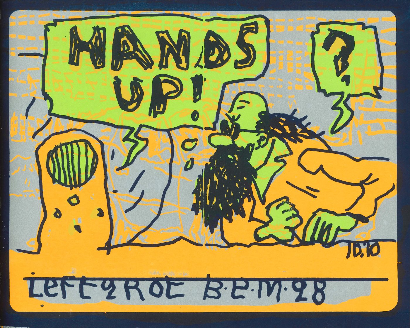 Cover of Hands Up!, published by Le Dernier Cri.You recently made a book published by Le Dernier Cri consisting of drawings made with your left hand. How did that idea come about?