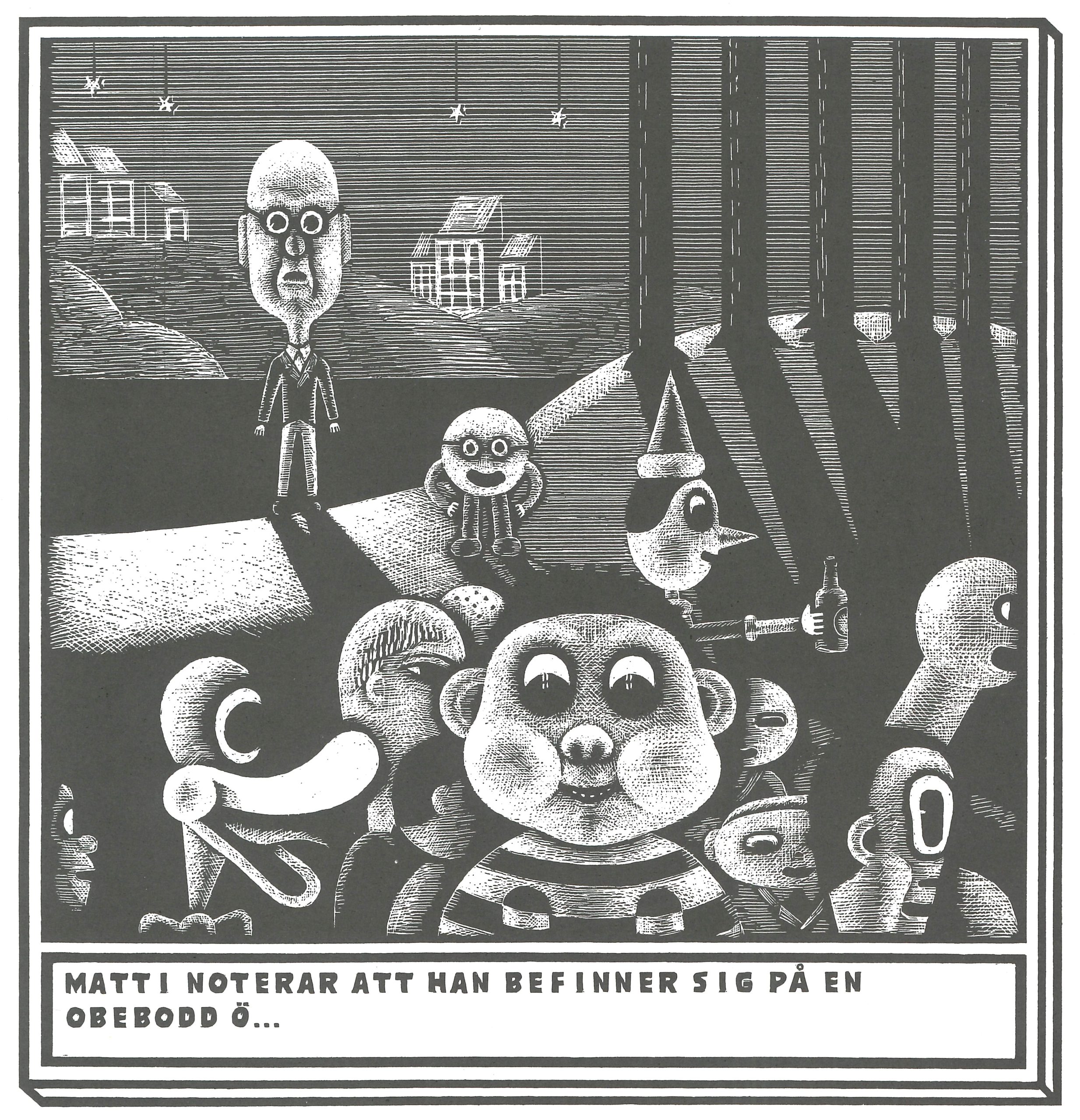 When I got older, I had to start reading comics in Swedish, because Finland didn’t really have an output of adult comics. In Sweden, you could find books by Enki Bilal, Jacques Tardi, and others. It was probably Tardi’s album The Arctic Marauder that first introduced me to comics made with scraperboard. I actually had the privilege of seeing the original artwork in Basel some years ago.